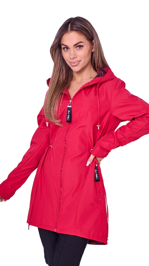 ZORKA-elegantní dámská jarní bunda s kapucí-červená 005