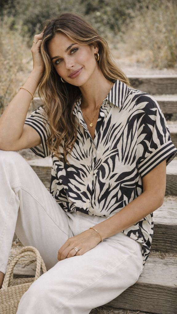 Ideální kousek k bílým kalhotám, džínám i sukním – skvěle se hodí do práce, na dovolenou i na běžné denní nošení.