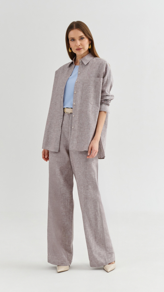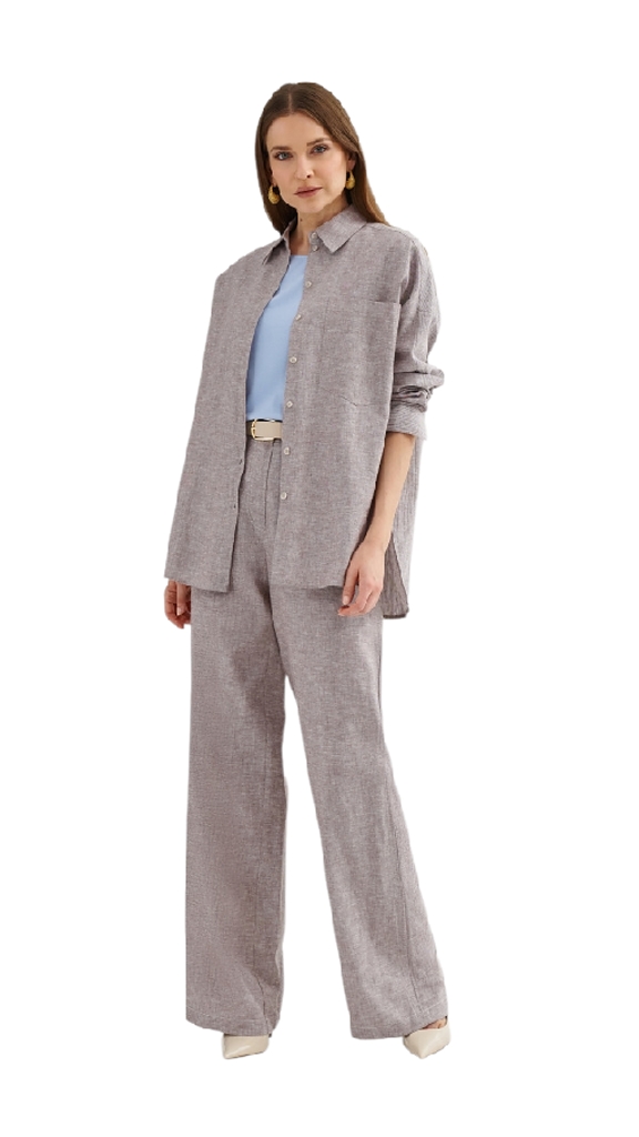 Elegantní grafitové kalhoty s širokými nohavicemi jsou ideální volbou pro moderní, minimalistický styl. Rovný, volný střih vytváří krásně dlouhou linii a opticky prodlužuje nohy, takže působí velmi žensky a sofistikovaně. Skvěle se hodí jak do práce, tak i na večerní setkání nebo stylovou procházku městem.