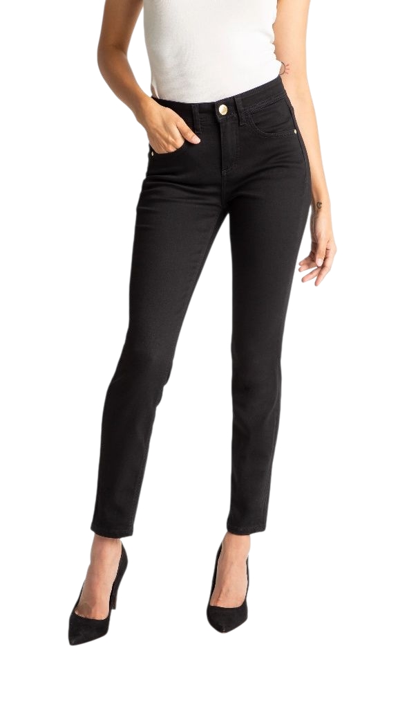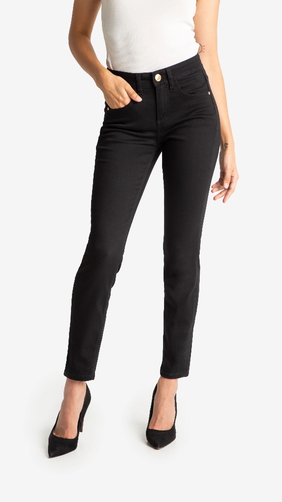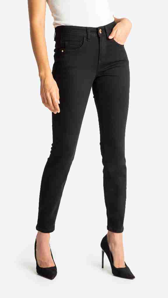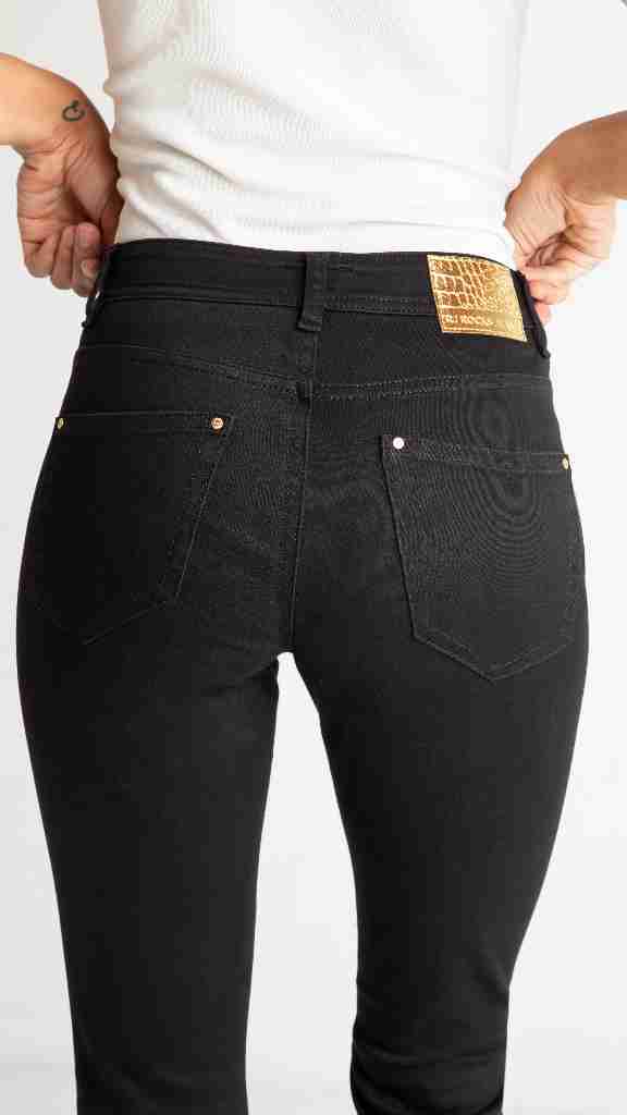 Přiléhavé kalhoty s vysokým pasem ADELE a úzkými nohavicemi se zapínáním na zip. Jsou vyrobeny z dokonale černé látky a zdobeny krásnými zlatými knoflíky. Náš oblíbený styl se jistě stane základem pro mnoho příležitostí!