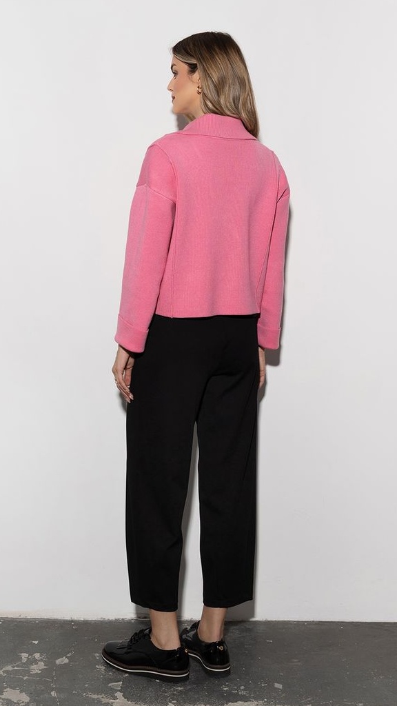 Elegantní kalhoty s elastickým pasem a s mírně balonovým střihem nohavic, které dodávají outfitu moderní a uvolněný vzhled. Elastický pas zajišťuje maximální pohodlí po celý den.. Vyrobené z pružného materiálu, který krásně drží tvar a vyhlazuje siluetu. Postranní kapsy na zip, efektní detaily a promyšlený střih podtrhnou jejich moderní vzhled.