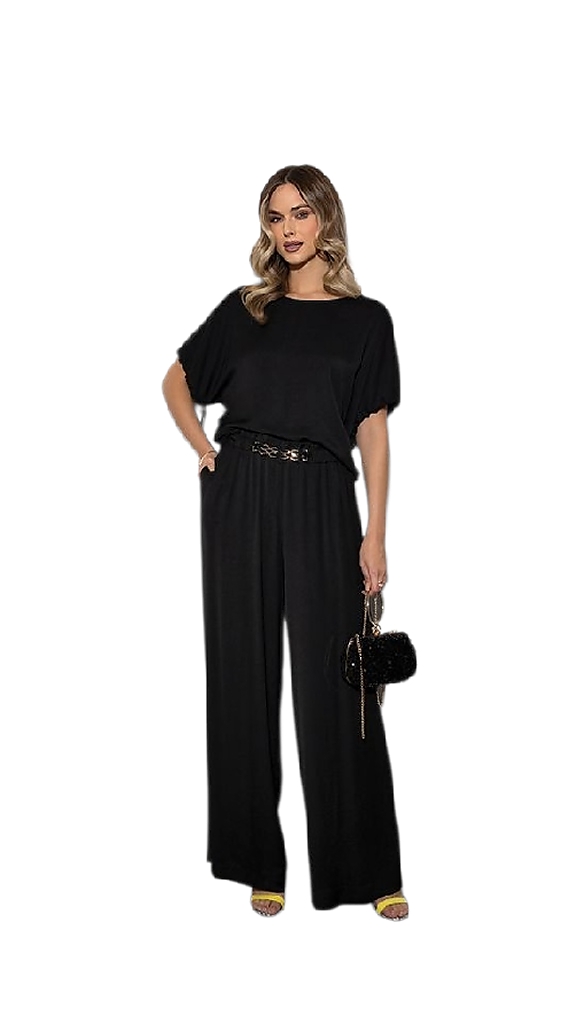 Kalhoty mají volný, lehce rozšířený střih, který opticky prodlužuje nohy a působí velmi žensky. Materiál je jemný, splývavý a příjemný na nošení. V kombinaci s halenkou DIXI ze stejné kolekce tvoří dokonale sladěný komplet ve stylu moderního overalu – ideální pro společenské příležitosti, pracovní schůzky i elegantní večerní outfit.