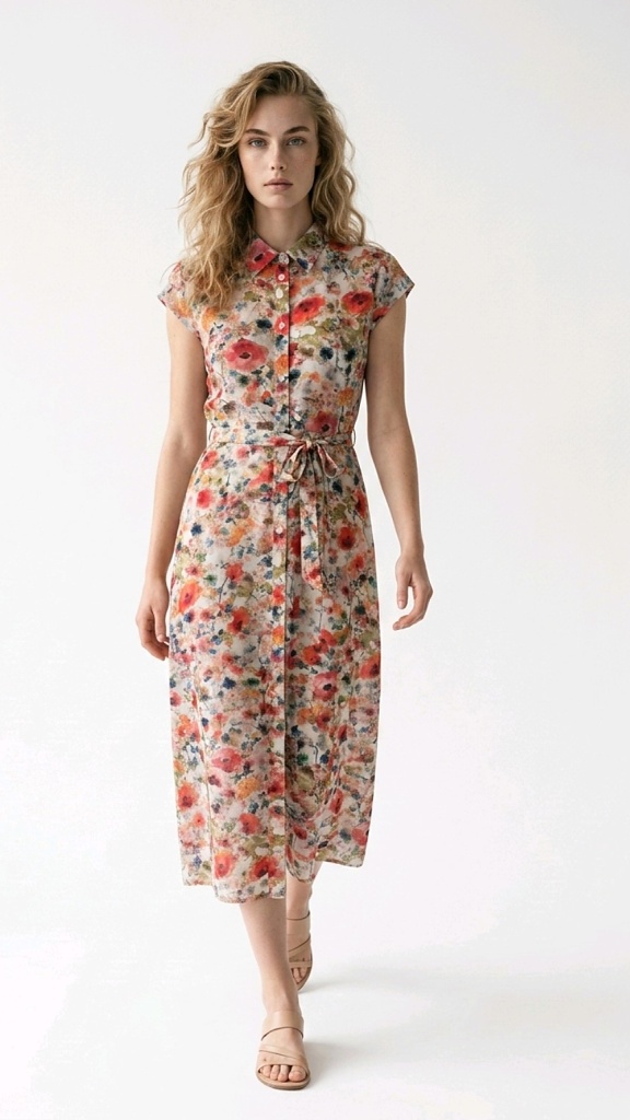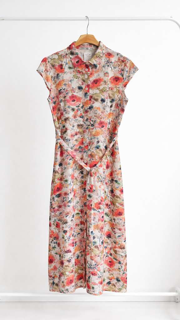 Lehké košilové šaty PATRYZIA s jemným květinovým potiskem představují ideální spojení ženskosti a pohodlí. Oblíbený košilový střih s límečkem a zapínáním po celé délce působí upraveně, zatímco pásek v pase krásně zvýrazní siluetu.