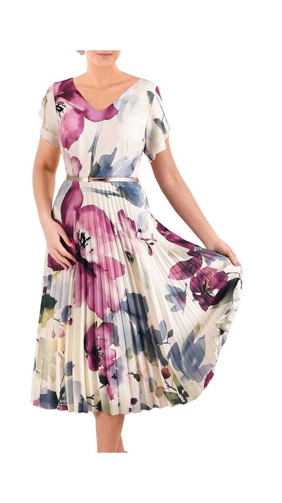 Ideální volba na společenské události, oslavy i elegantní denní nošení. Součástí tenký opasek v pudrovém odstínu.
