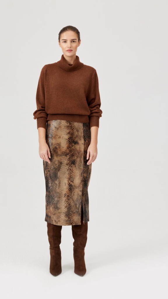 Objevte nejmódnější barvu této sezóny –čokoládovou. Rolák FÉRIA je elegantní klasika s nádechem útulnosti a nadčasového stylu. Díky měkkému úpletu s příměsí vlny je příjemný na dotek, hřejivý a krásně drží tvar. Volnější střih se spadlými rameny dodává pohodlí i moderní vzhled.