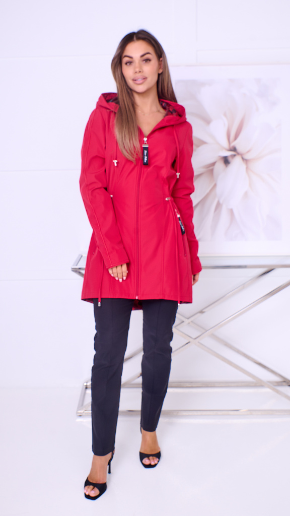 ZORKA-elegantní dámská jarní bunda s kapucí-červená 005