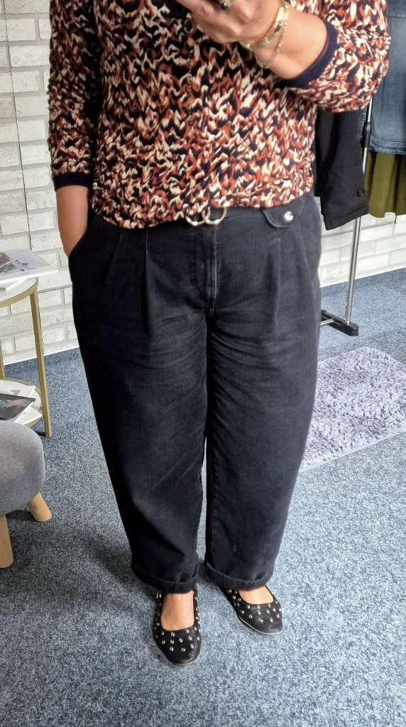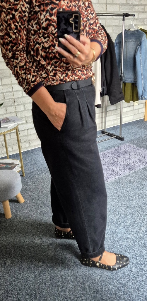 Kalhoty SISI, které spojují pohodlí, styl i eleganci. Díky vysokému pasu a extra širokým nohavicím zakončeným širším ohrnutím působí moderně, ale zároveň nadčasově.