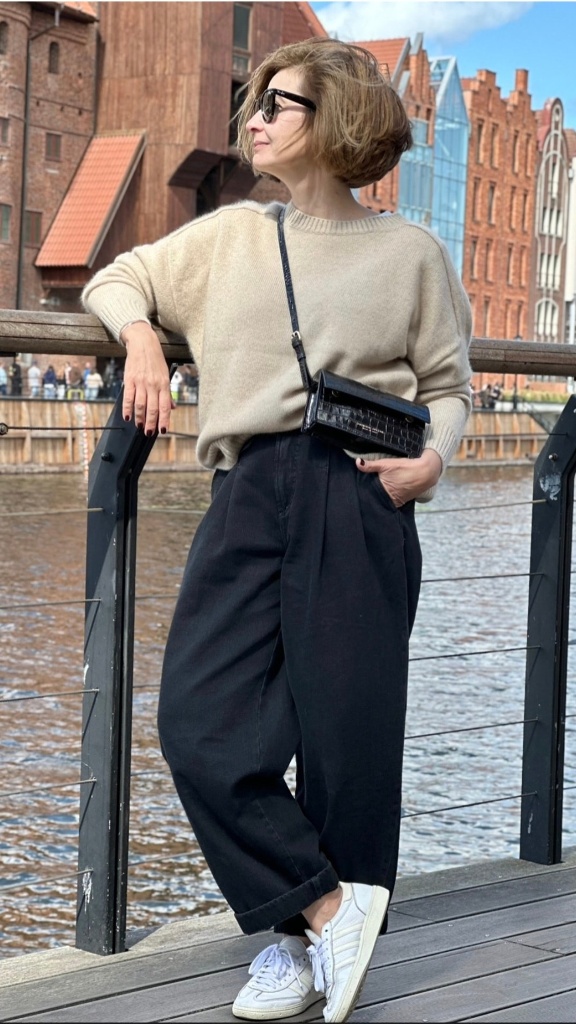 Univerzální střih padne každé postavě – a pokud jste menší, doporučujeme ohrnout si manžetu pro dokonalý efekt.