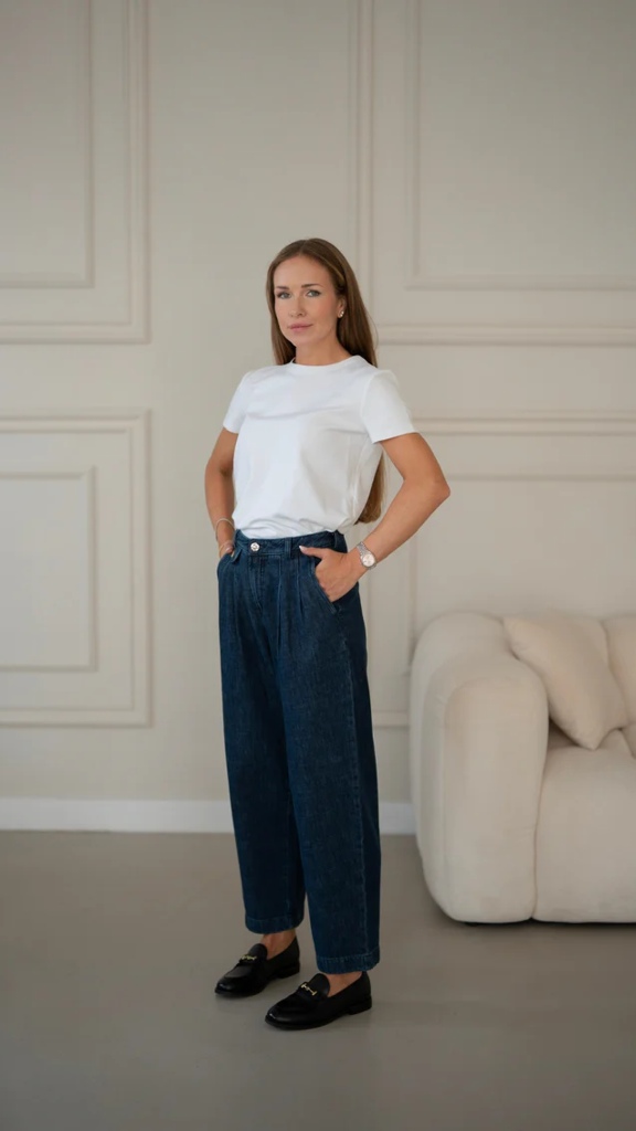 Univerzální střih padne každé postavě – a pokud jste menší, doporučujeme ohrnout si manžetu pro dokonalý efekt.