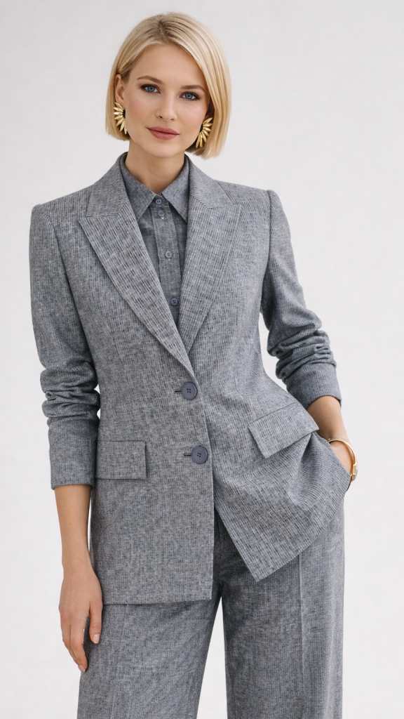 Elegantní grafitové kalhoty s širokými nohavicemi jsou ideální volbou pro moderní, minimalistický styl. Rovný, volný střih vytváří krásně dlouhou linii a opticky prodlužuje nohy, takže působí velmi žensky a sofistikovaně. Skvěle se hodí jak do práce, tak i na večerní setkání nebo stylovou procházku městem.