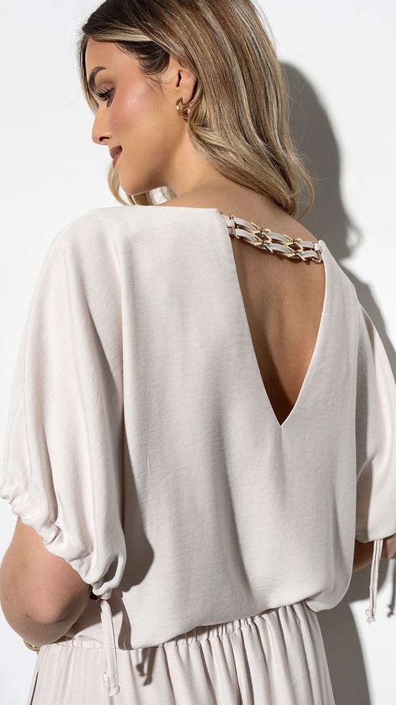 ✨ Efektní výstřih na zádech s ozdobným zlatým řetízkem